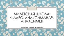 МИЛЕТСКАЯ ШКОЛА ФАЛЕС АНАКСИМАНДР АНАКСИМЕН Выполнила Гришина Евгения
