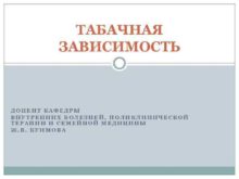 ТАБАЧНАЯ ЗАВИСИМОСТЬ ДОЦЕНТ КАФЕДРЫ ВНУТРЕННИХ БОЛЕЗНЕЙ ПОЛИКЛИНИЧЕСКОЙ ТЕРАПИИ