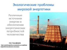 Экологические проблемы мировой энергетики Различные источники энергии в