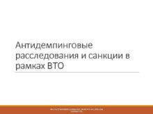 Антидемпинговые расследования и санкции в рамках ВТО ФАКУЛЬТЕТ
