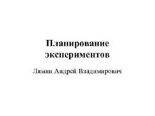 Планирование экспериментов Лямин Андрей Владимирович Основные понятия