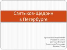 Салтыков-Щедрин в Петербурге Презентацию подготовили Ученики 10 класса