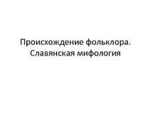 Происхождение фольклора Славянская мифология Проблема возникновения фольклора