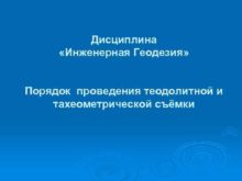 Дисциплина Инженерная Геодезия Порядок проведения теодолитной и тахеометрической