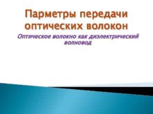 Парметры передачи оптических волокон Оптическое волокно как диэлектрический