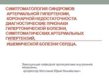 СИМПТОМАТОЛОГИЯ СИНДРОМОВ АРТЕРИАЛЬНОЙ ГИПЕРТЕНЗИИ КОРОНАРНОЙ НЕДОСТАТОЧНОСТИ ДИАГНОСТИЧЕСКИЕ ПРИЗНАКИ