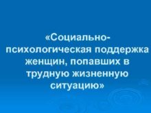 Социальнопсихологическая поддержка женщин попавших в трудную жизненную