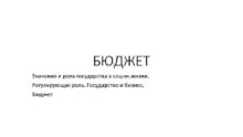 БЮДЖЕТ Значение и роль государства в соц-эк жизни