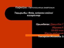 Кафедра Патологиялық анатомия Тақырыбы Өлім өлімнен кейінгі өзгерістер