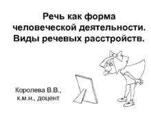 Речь как форма человеческой деятельности Виды речевых расстройств