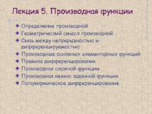 Лекция 5 Производная функции Определение производной Геометрический смысл