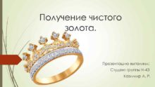 Получение чистого золота Презентацию выполнил Студент группы Н-43