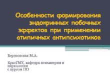 Особенности формирования эндокринных побочных эффектов применении атипичных антипсихотиков
