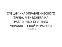 СПЕЦИФИКА УПРАВЛЕНЧЕСКОГО ТРУДА МЕНЕДЖЕРА НА РАЗЛИЧНЫХ СТУПЕНЯХ УПРАВЛЕЧЕСКОЙ