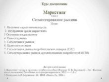Курс дисциплины Маркетинг Тема 2 Сегментирование рынков План