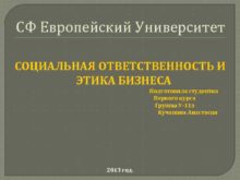 СФ Европейский Университет СОЦИАЛЬНАЯ ОТВЕТСТВЕННОСТЬ И ЭТИКА БИЗНЕСА