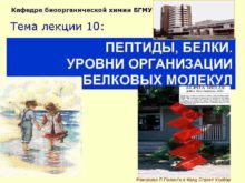 Кафедра биоорганической химии БГМУ Тема лекции 10 ПЕПТИДЫ