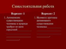 Самостоятельная работа Вариант 1 Вариант 2 1 Автономное