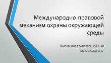 Международно-правовой механизм охраны окружающей среды Выполнила студент гр