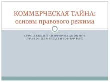 КОММЕРЧЕСКАЯ ТАЙНА основы правового режима КУРС ЛЕКЦИЙ ИНФОРМАЦИОННОЕ