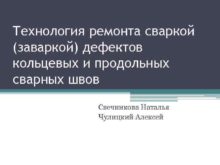 Технология ремонта сваркой заваркой дефектов кольцевых и продольных