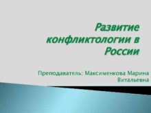 Развитие конфликтологии в России Преподаватель Максименкова Марина Витальевна