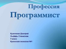 Профессия Программист Куличенко Дмитрий Лыфарь Станислав 7 класс