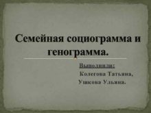 Семейная социограмма и генограмма Выполнили Колегова Татьяна Ушкова