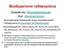 Возбудители туберкулеза Семейство Mycobacteriaceae Род Mycobacterium Вызывающие туберкулёз