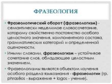 ФРАЗЕОЛОГИЯ Фразеологический оборот фразеологизм семантически неделимое словосочетание