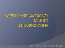 ОДЕРЖАННЯ САЛОМАСУ ТА ЙОГО ВИКОРИСТАННЯ Підготувала Самойленко Богдана