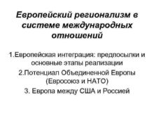 Европейский регионализм в системе международных отношений 1 Европейская