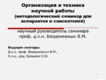 Организация и техника научной работы методологический семинар для