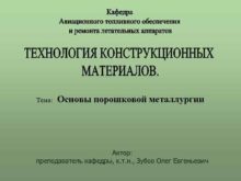 Тема Основы порошковой металлургии Автор преподаватель кафедры к