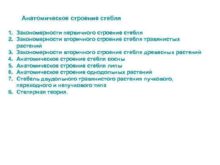 Анатомическое строение стебля 1 Закономерности первичного строение
