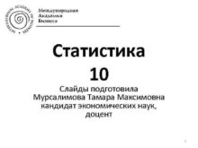 Cтатистика 10 Слайды подготовила Мурсалимова Тамара Максимовна кандидат
