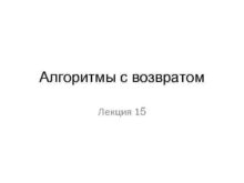 Алгоритмы с возвратом Лекция 15 Интересная область