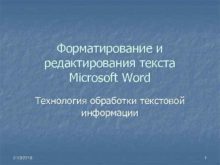 Форматирование и редактирования текста Microsoft Word Технология обработки