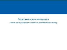 Экономическое мышление Тема 2 Альтернативная стоимость и оптимальный
