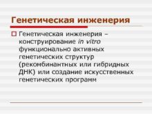 Генетическая инженерия o Генетическая инженерия конструирование in