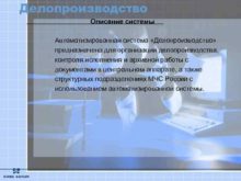Делопроизводство Описание системы Автоматизированная система Делопроизводство предназначена для