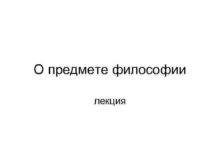 О предмете философии лекция Организационные вопросы