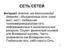 СЕТЬ СЕТЕЙ Интернет Internet от Interconnected Networks —