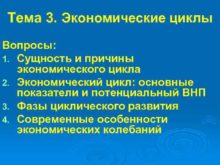 Тема 3 Экономические циклы Вопросы 1 Сущность и
