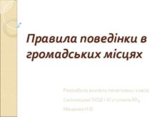 Правила поведінки в громадських місцях Розробила вчитель початкових
