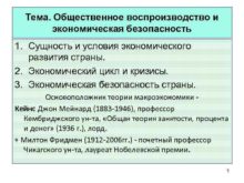 Тема Общественное воспроизводство и экономическая безопасность 1 Сущность