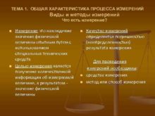 ТЕМА 1 ОБЩАЯ ХАРАКТЕРИСТИКА ПРОЦЕССА ИЗМЕРЕНИЙ Виды и