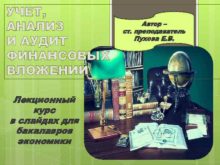 УЧЕТ АНАЛИЗ И АУДИТ ФИНАНСОВЫХ ВЛОЖЕНИЙ Лекционный курс