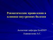 Ревматические проявления в клинике внутренних болезни Ассистент кафедры