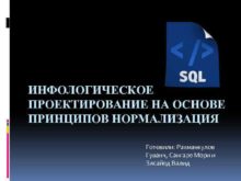 ИНФОЛОГИЧЕСКОЕ ПРОЕКТИРОВАНИЕ НА ОСНОВЕ ПРИНЦИПОВ НОРМАЛИЗАЦИЯ Готовили Рахманкулов